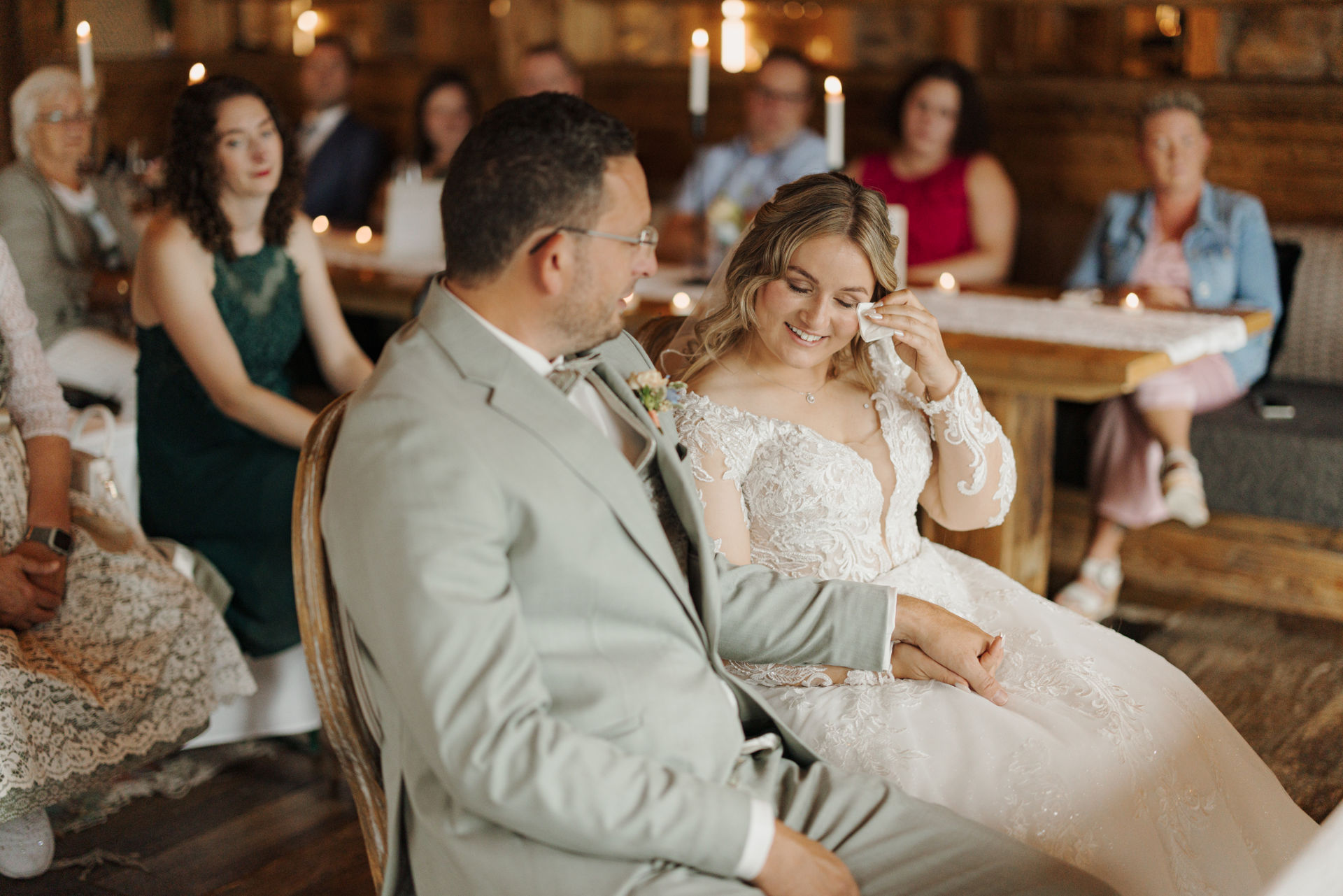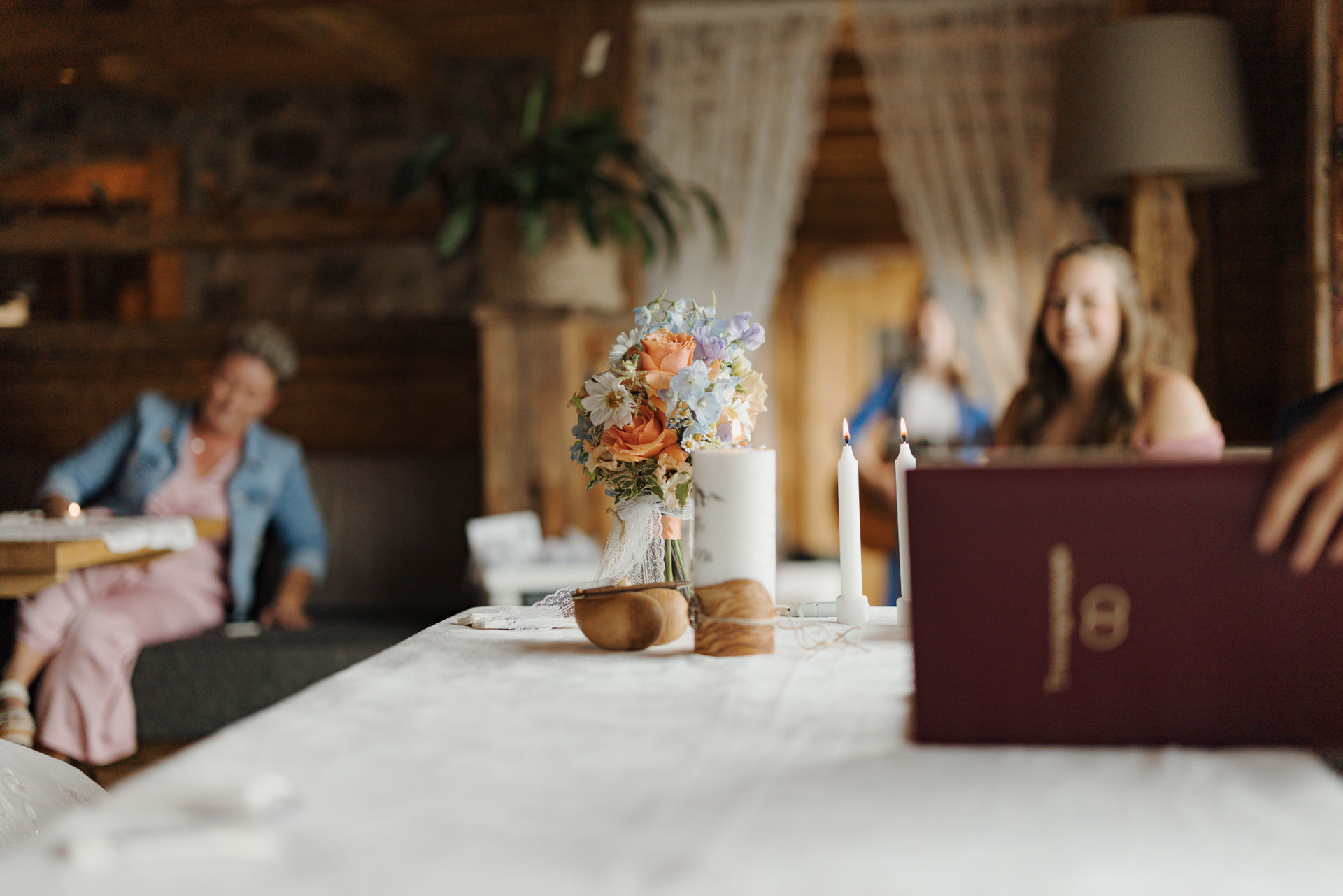Inside, it was cozy: a fireplace, lovingly arranged floral decorations, and an atmosphere that was both stylish and warm. The small gathering made it particularly intimate – genuine closeness, familiar conversations, and many emotional moments characterized the day.