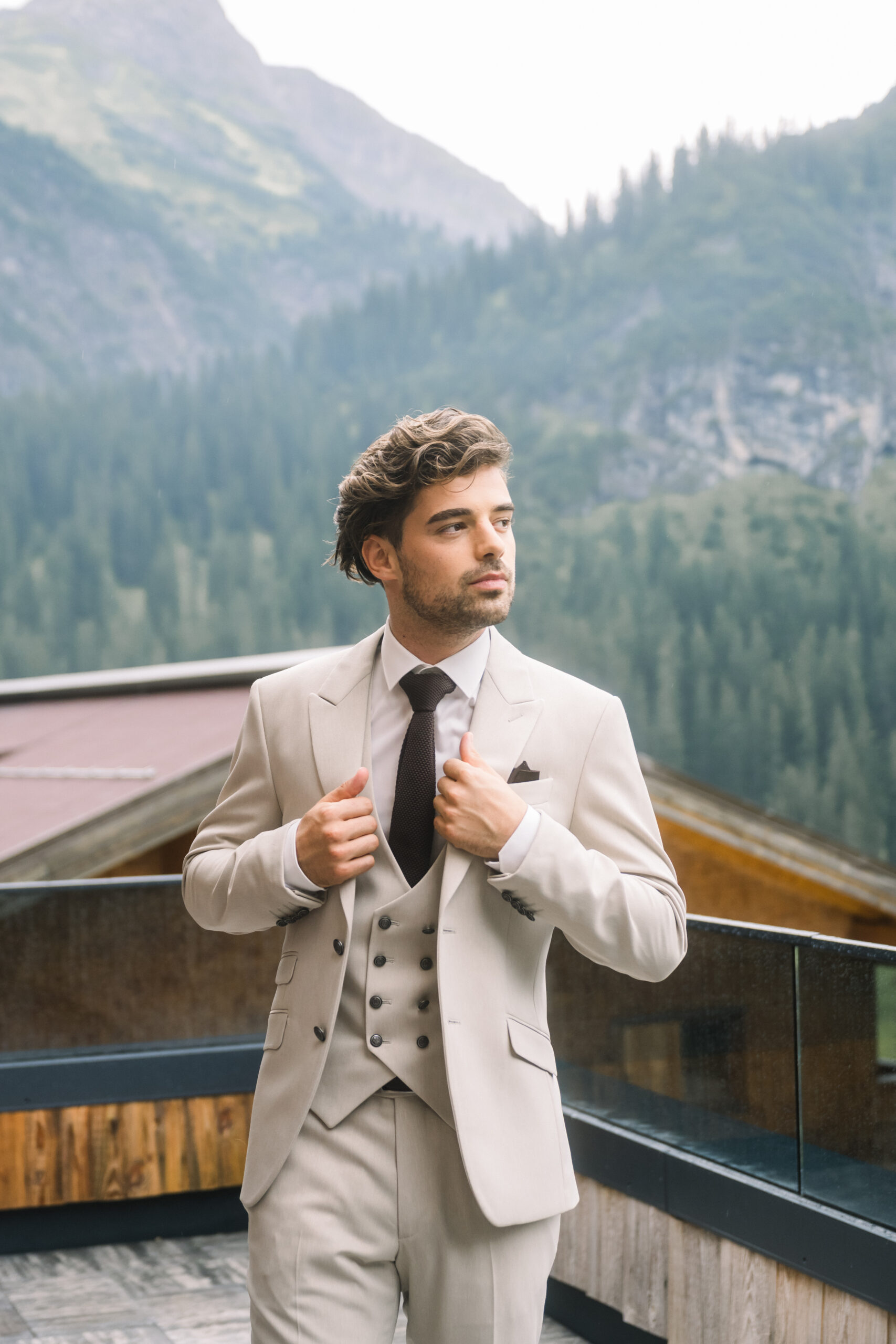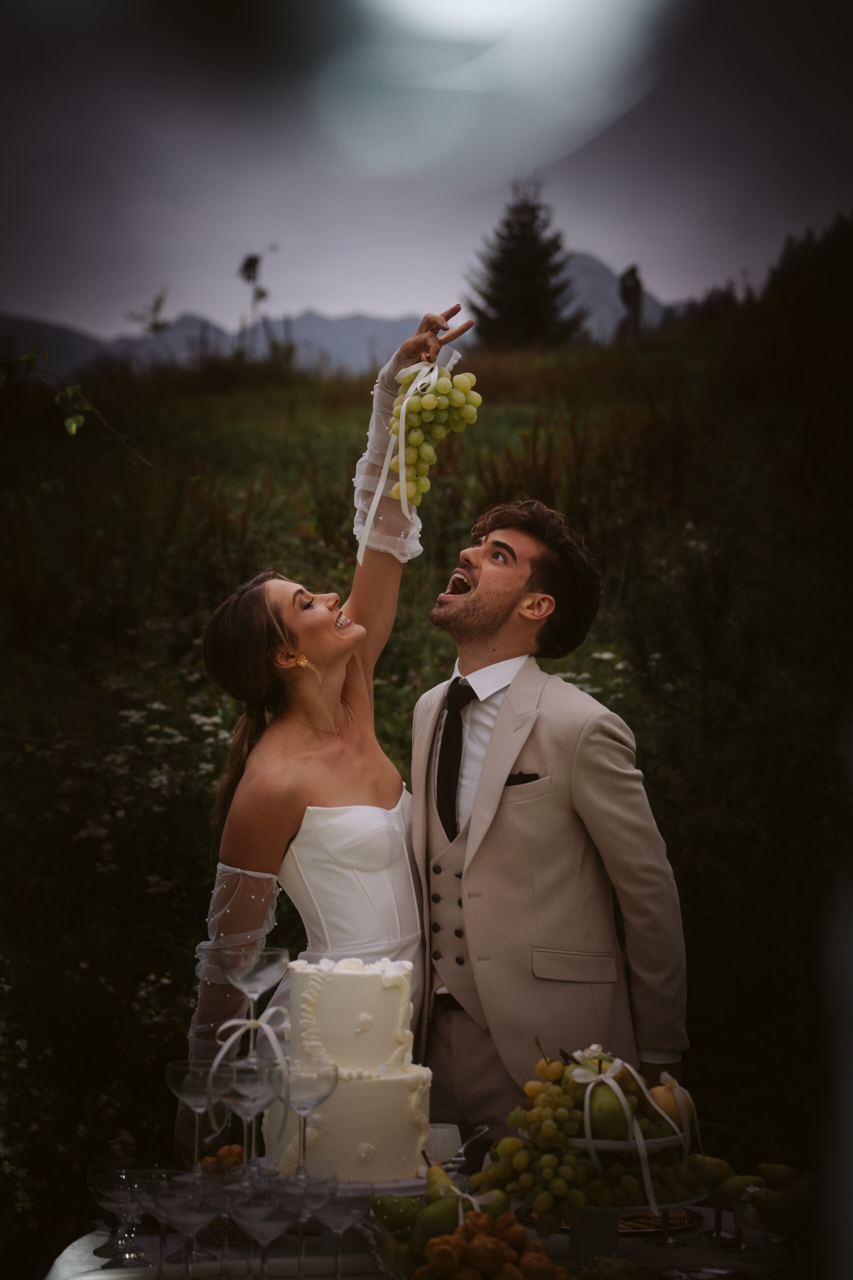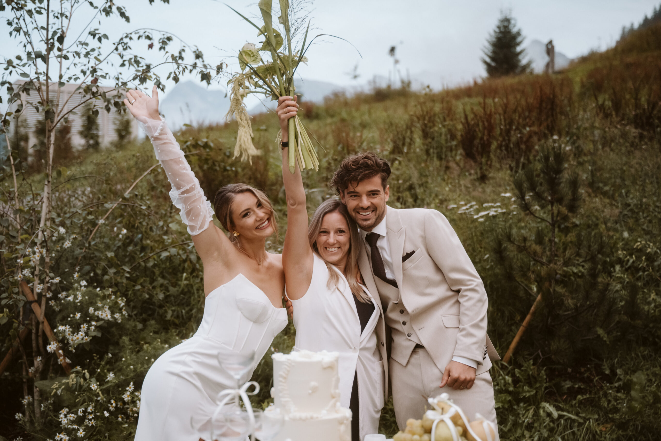 Most people imagine a traditional mountain wedding in traditional costume, with white and red checkered tablecloths and rustic dark wood.